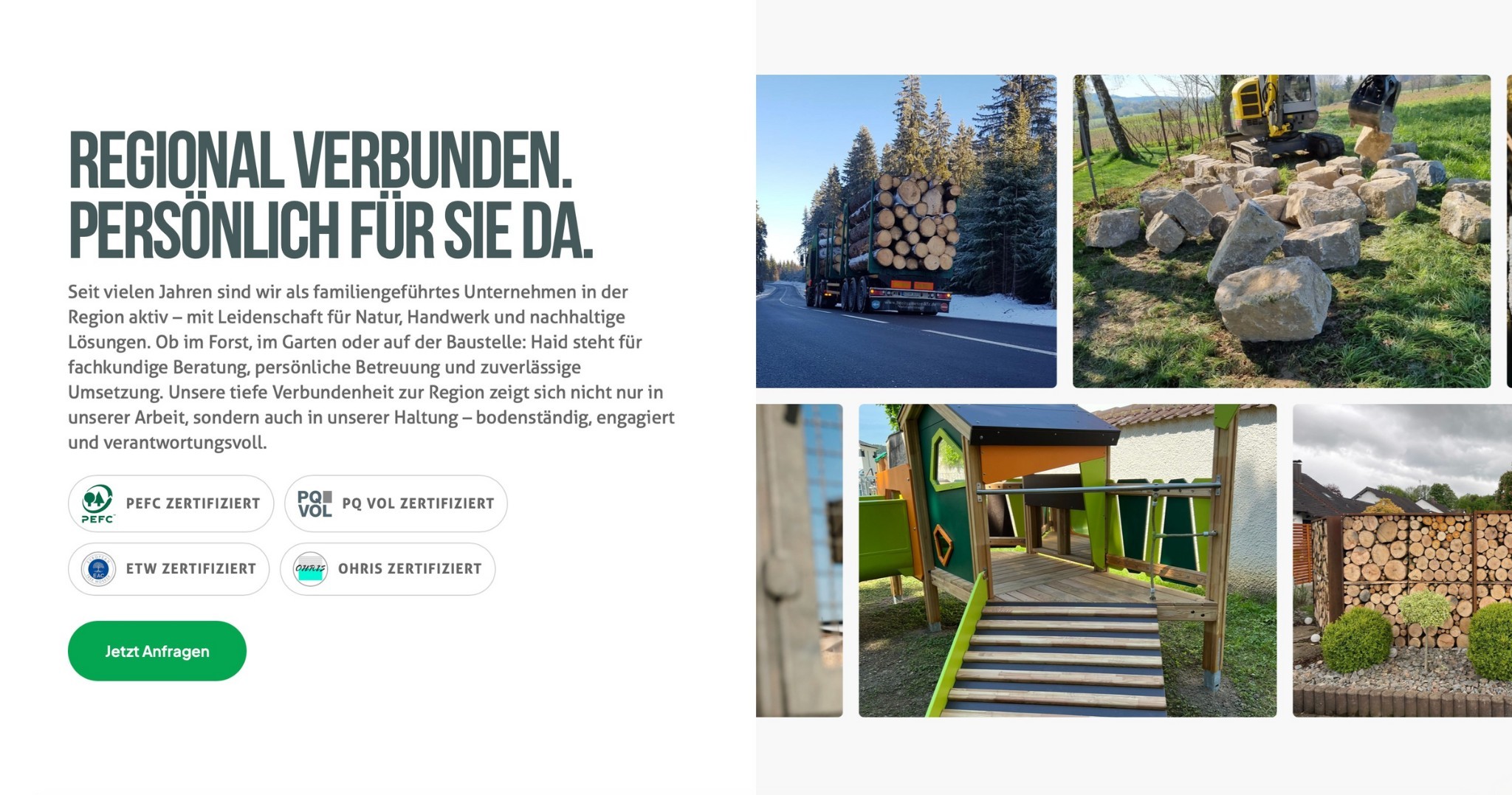 Forstservice Haid ist ein Experte für Forst-, Garten- & Umweltarbeiten. Unsere Aufgabe war es, ihre technischen Leistungen und Services in eine moderne Webpräsenz zu übersetzen – mit Klarheit, natürlichen Bildern und einer Struktur, die Vertrauen schafft. So entstand eine authentische Website, die Tradition, Handwerk und moderne Dienstleistung perfekt vereint.